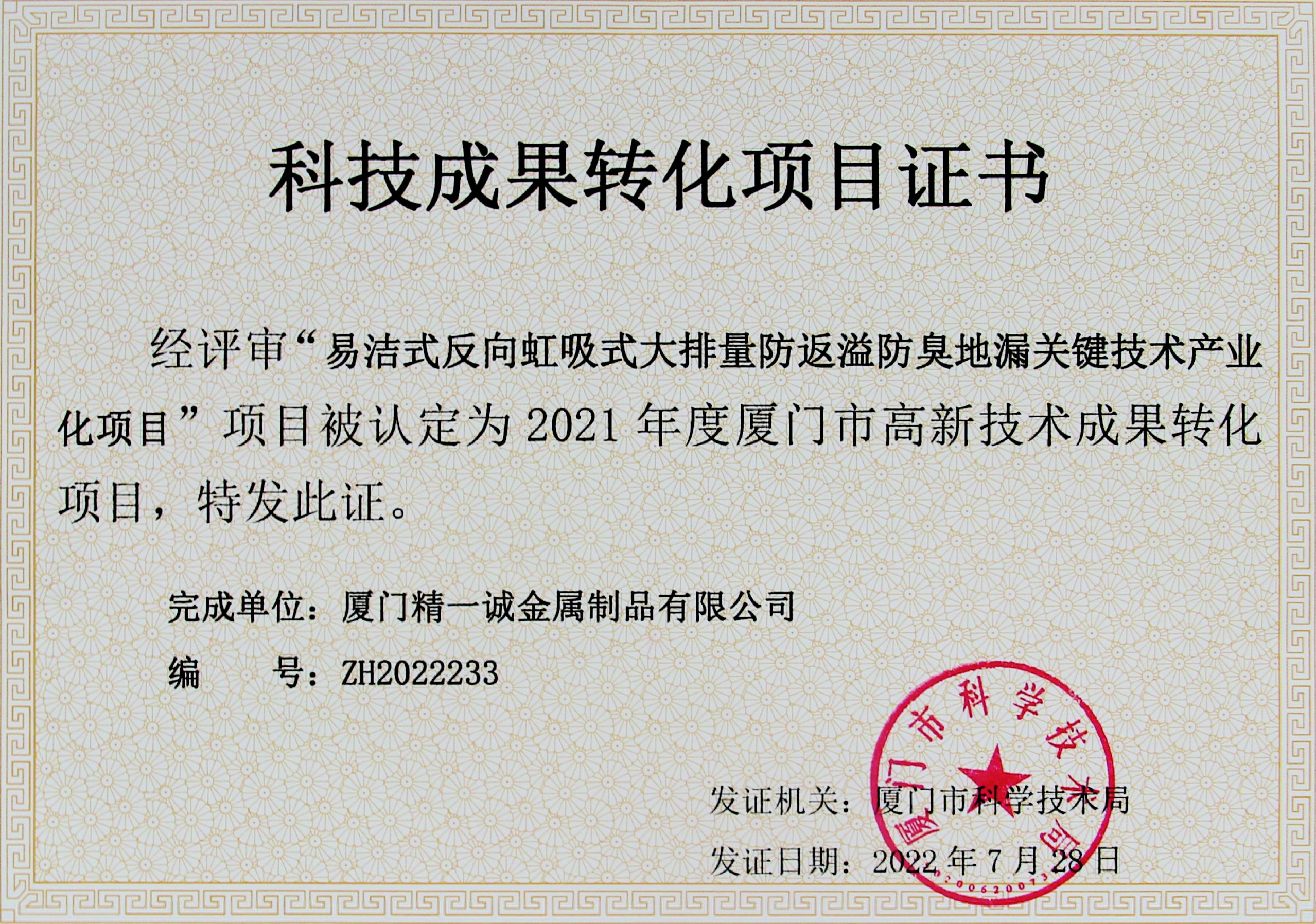 厦门市高新技术成果转化项目